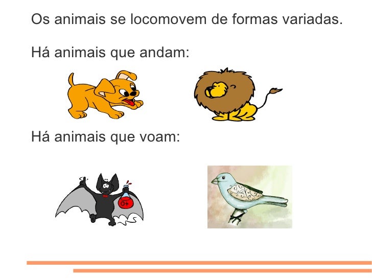 Os animais se locomovem de diferentes formas: andando, nadando, movimentando, correndo, saltando, balançando-ser ou rastejando. Eles se movimentam na terra,.