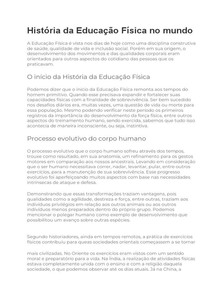 História Da Educação Física No Mundo PDF Física Humano