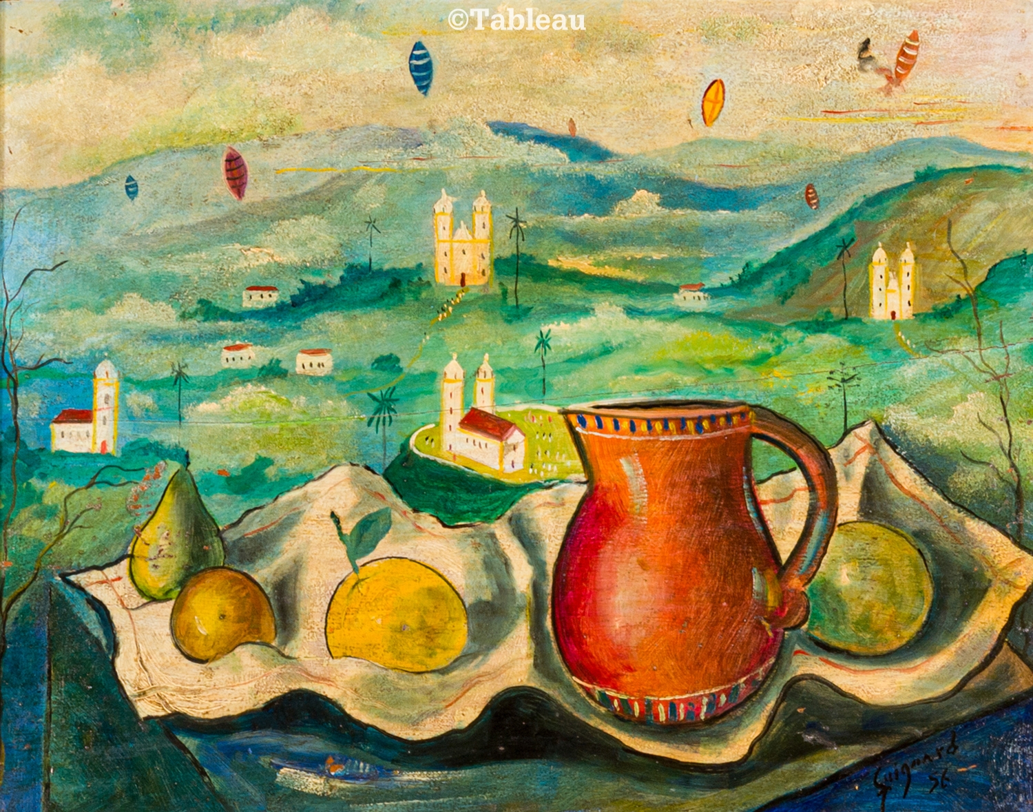 Alberto da Veiga Guignard (Nova Friburgo, Rio de Janeiro, 1896 - Belo Horizonte, Minas Gerais, 1962). Pintor, professor, desenhista, ilustrador e gravador. Dedica-se a vários gêneros da pintura, como retrato, autorretrato, paisagem, natureza-morta, flor, pinturas de gênero e temática religiosa, muitas vezes tratando de dois ou mais gêneros na mesma tela, quase sempre de caráter.