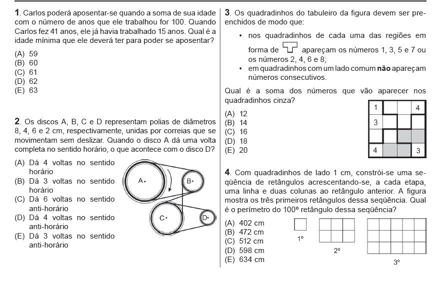 Prova da 9ª olimpíada brasileira de matemática. Atividades Infantil