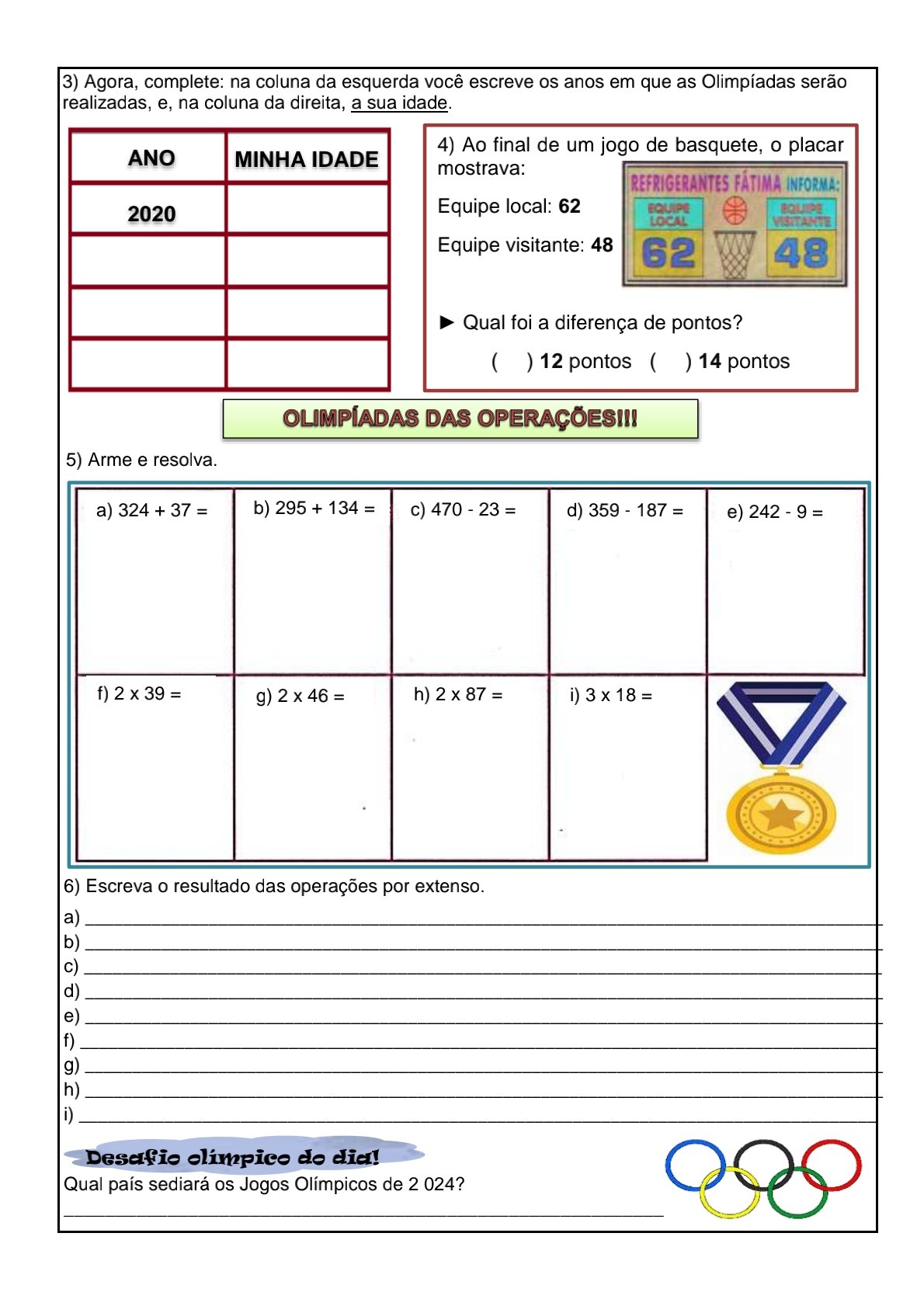 👍Matemática Olimpíadas Atividade de matemática para trabalhar as olimpíadas... Atividade infantil