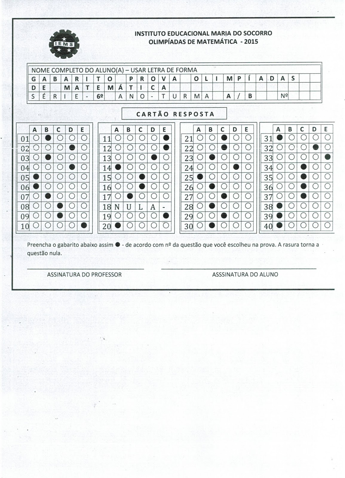Instituto Educacional Maria do Socorro OLIMPÍADAS DE MATEMÁTICA 6º AO 9º ANO