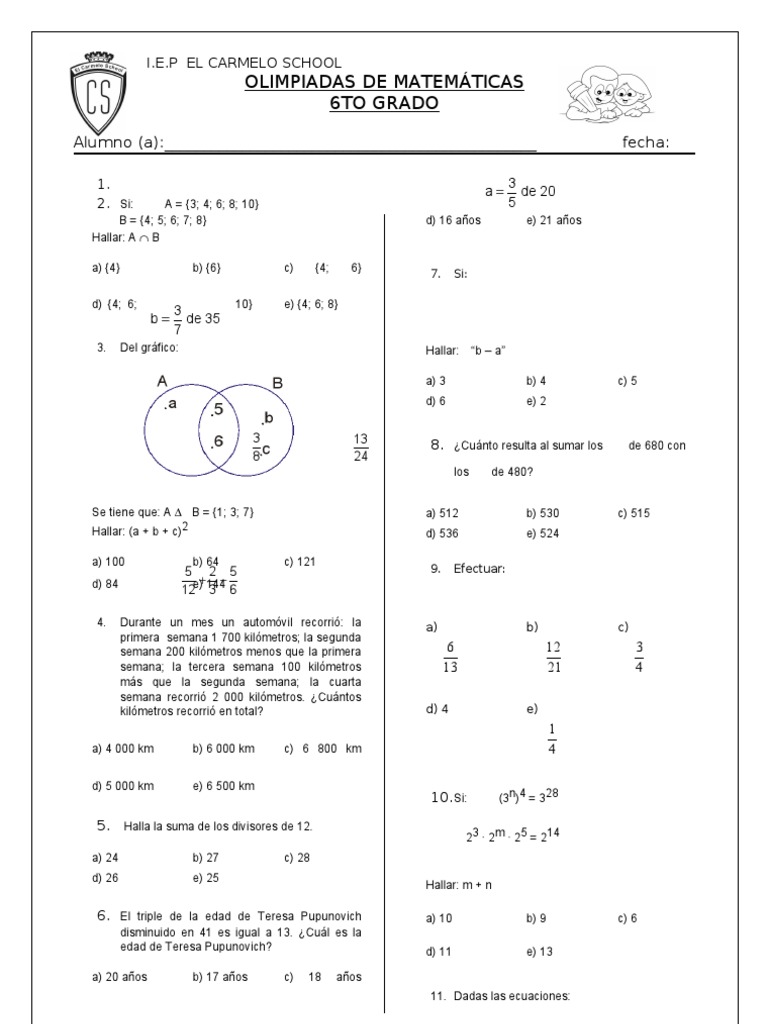 Olimpíada de Matemática 6º ano Colégio Lourdinas