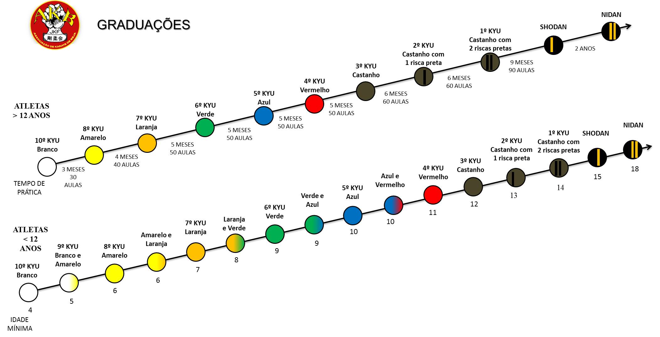 Pratique Karatêdo Ordem das Graduações e tempo para Exame de Graduação