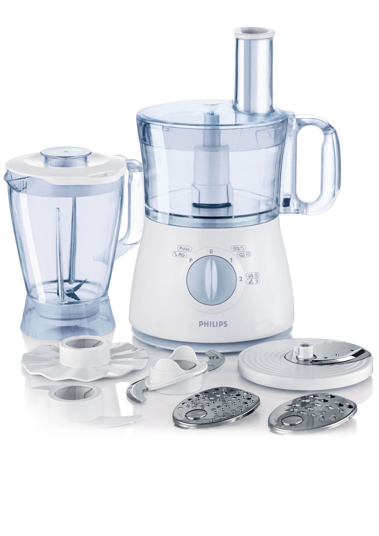 Philips Walita Processador de alimentos . Excelentes resultados sem esforço.. dois discos de metal para ralar e picar em pedaços finos e médios; liquidificador resistente de 1,5L para misturar, triturar e mexer ingredientes variados; um espremedor para frutas cítricas; um batedor balão para bater e misturar ingredientes..