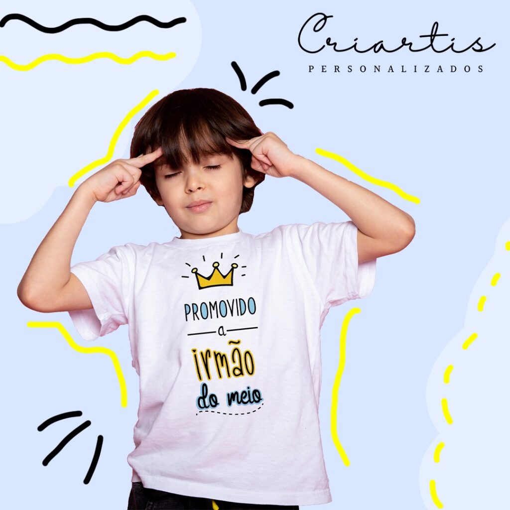 Tshirt infantil “Promovido a irmão do meio” modelo coroa Criartis Personalizados
