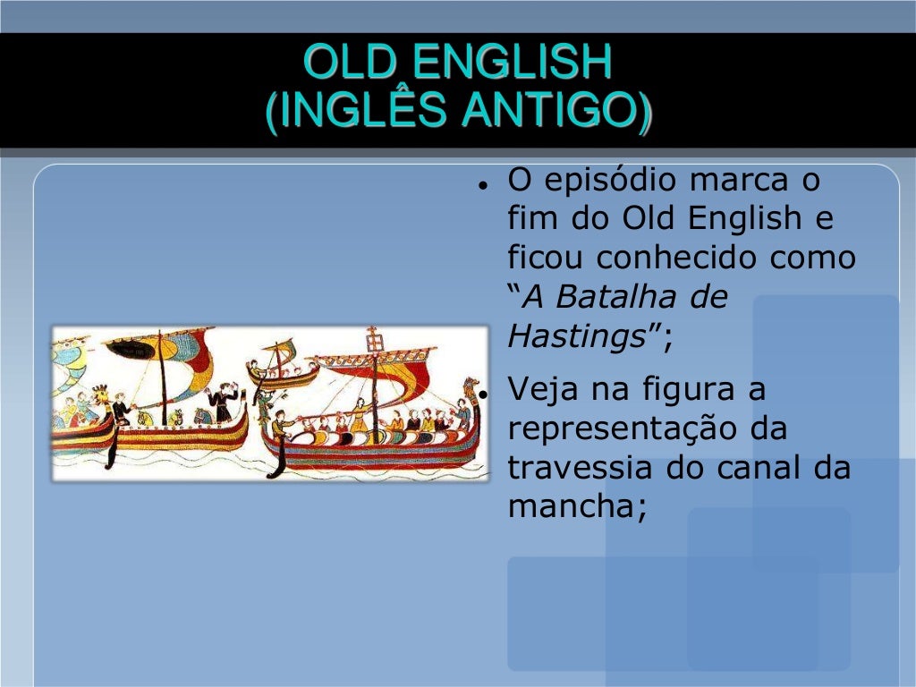 Qual é o período médio da língua inglesa? O inglês antigo se deu no período de 1100 d.C. até 1500 a.C. Essa versão da língua inglesa foi bastante afetada pela língua dos normandos, que falavam uma versão ancestral do francês, e também pelo dialeto viking. Esse inglês ainda não era falado pelo Império. Como chegamos à língua inglesa moderna?