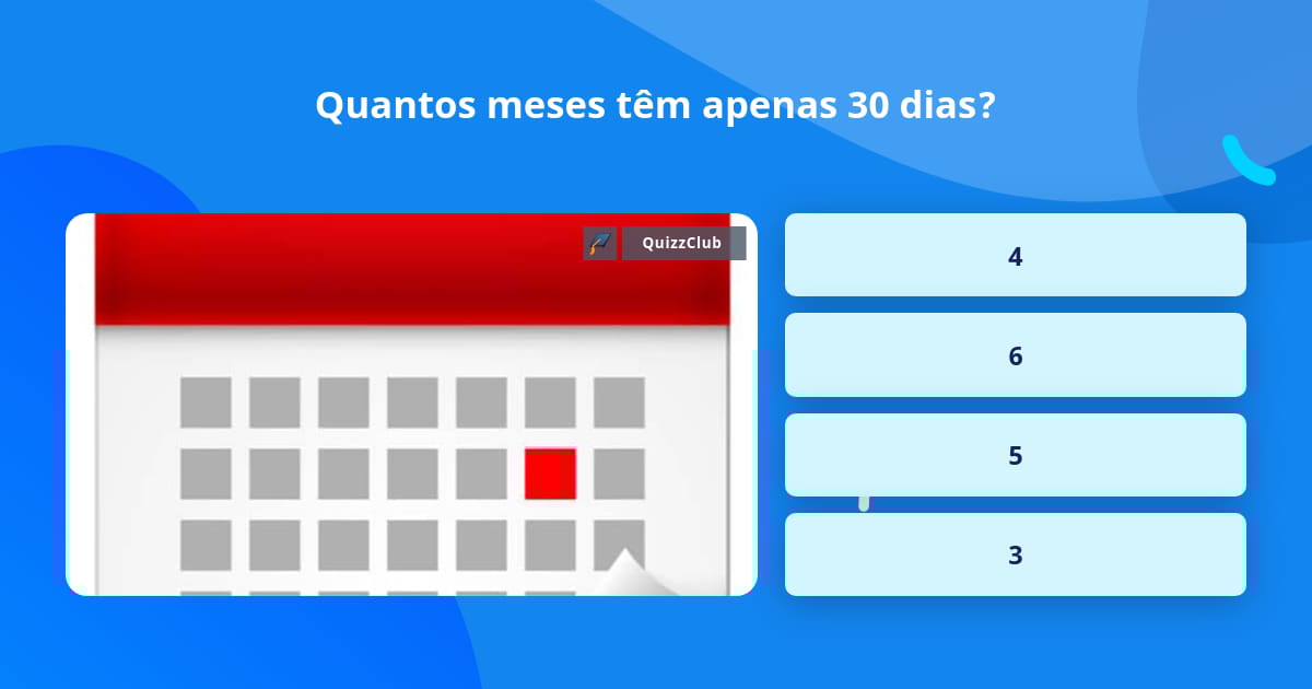 Quantos meses têm apenas 30 dias? Respostas Triviais